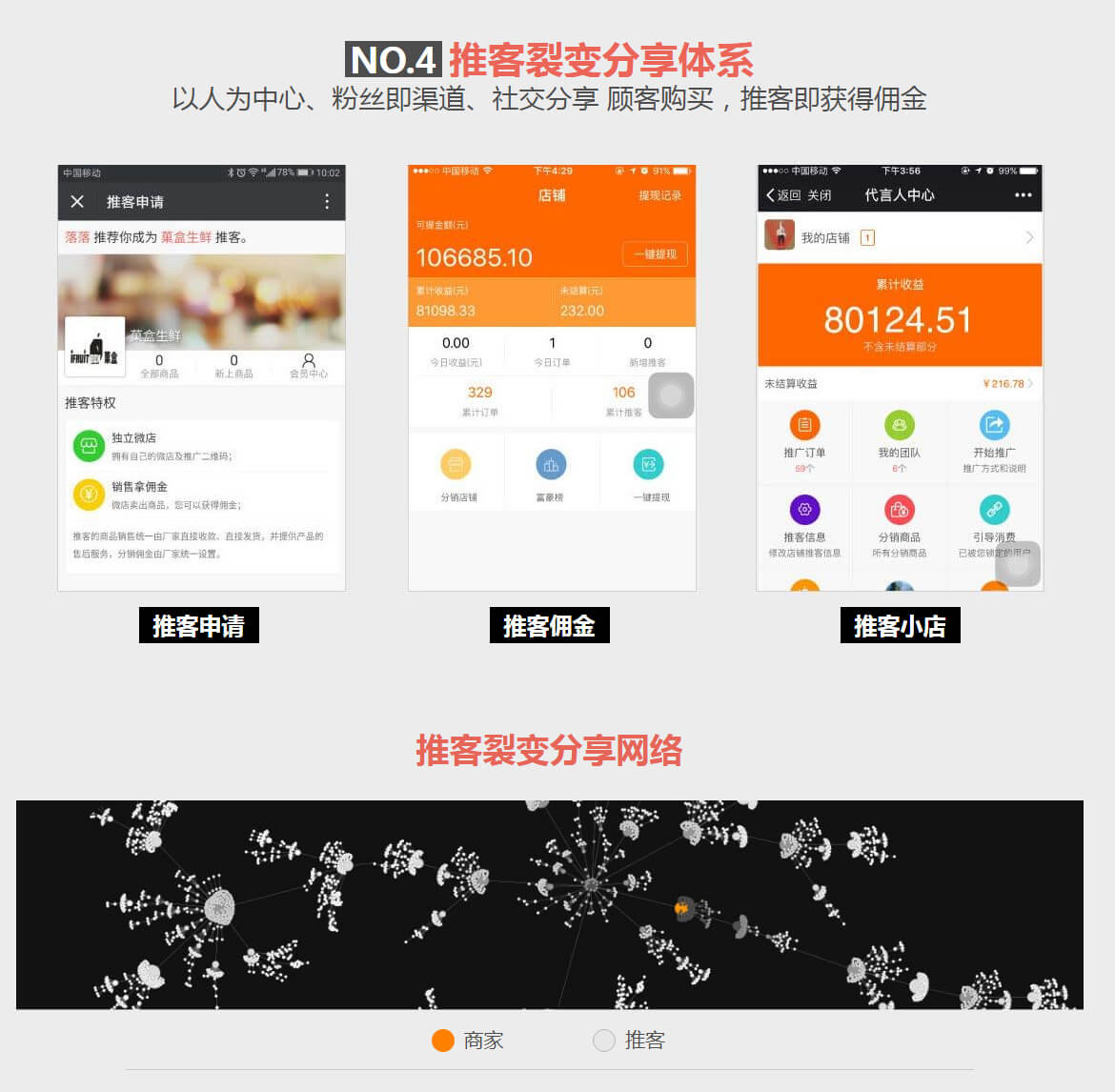 以人为中心、粉丝即渠道、社交分享 顾客购买,推客即获得佣金