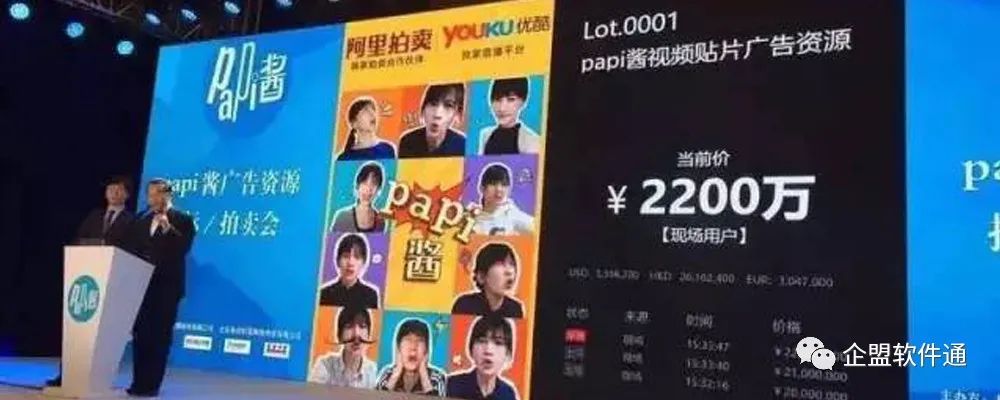 我们知道,2016年papi酱第一条广告竞拍拍出了2200万的高价,曾引发媒体一轮又一轮的报道,广告赞助商也因此获得了广泛关注。